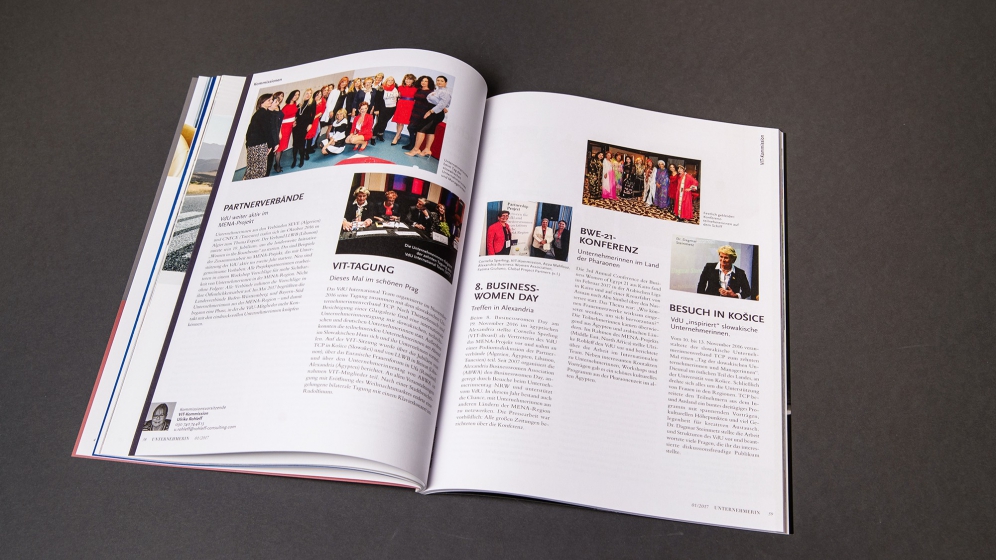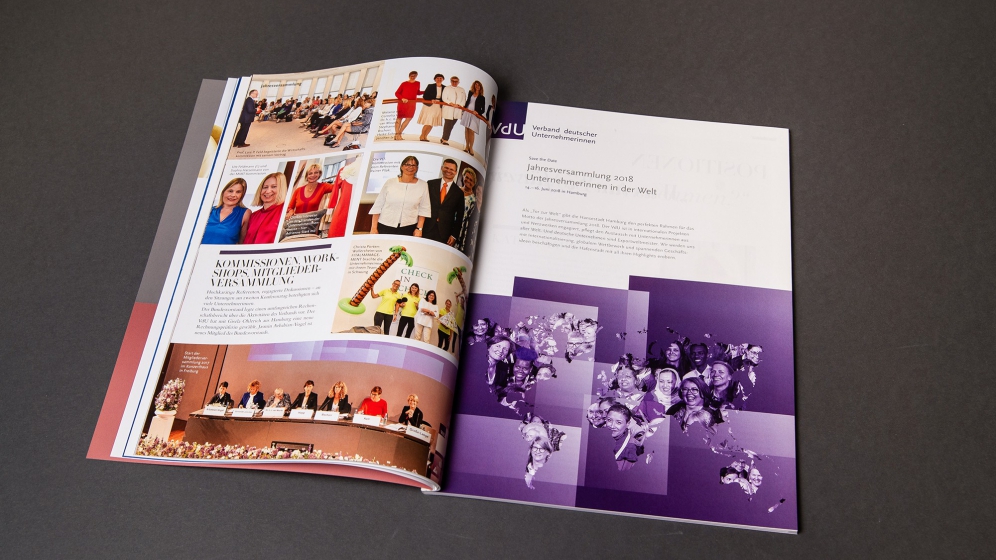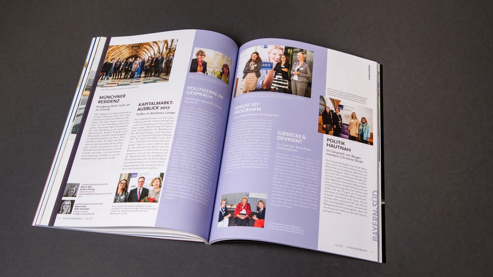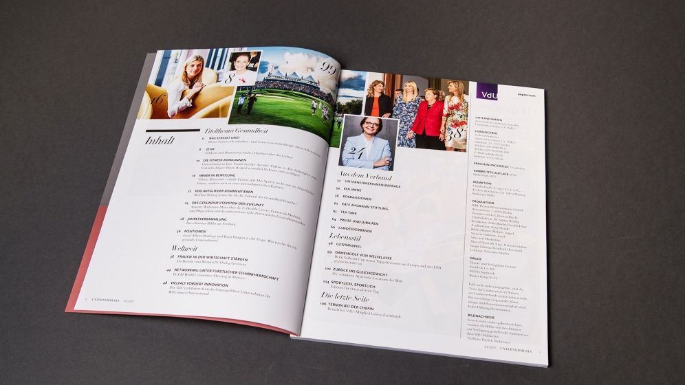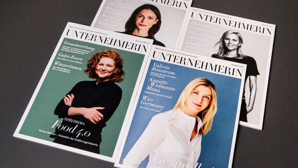 From issue 2/2016 to 1/2019, I worked for the bi-annual magazine UNTERNEHMERIN for VDU. It is a magazine about female entrepreneurship and features articles, interviews, reviews and events.