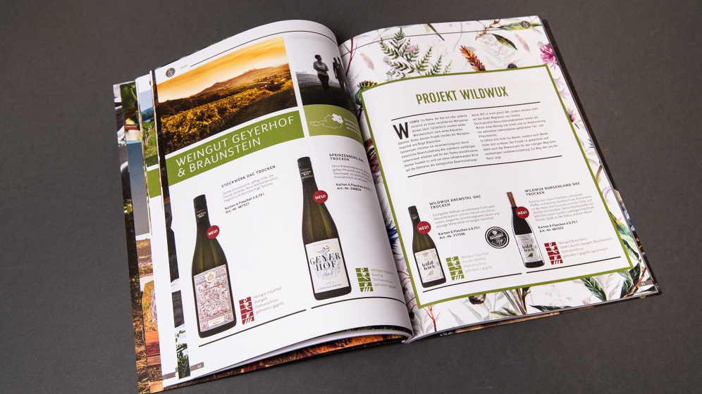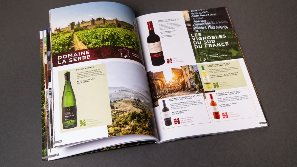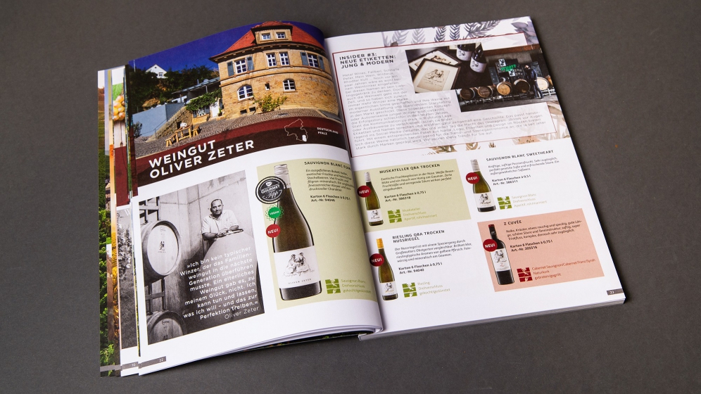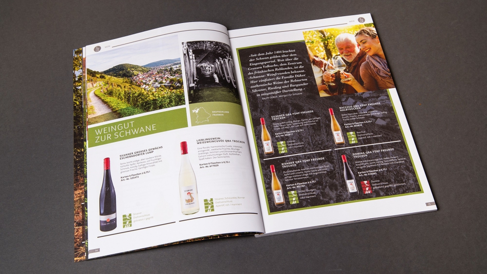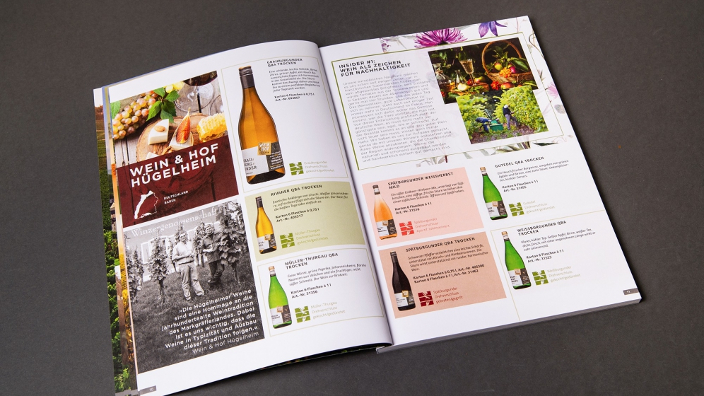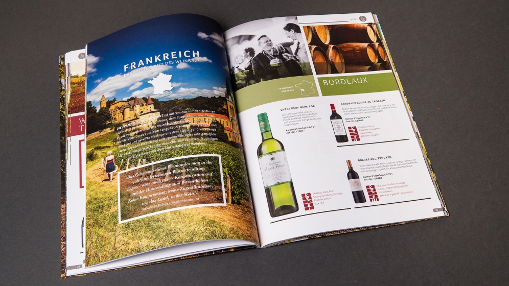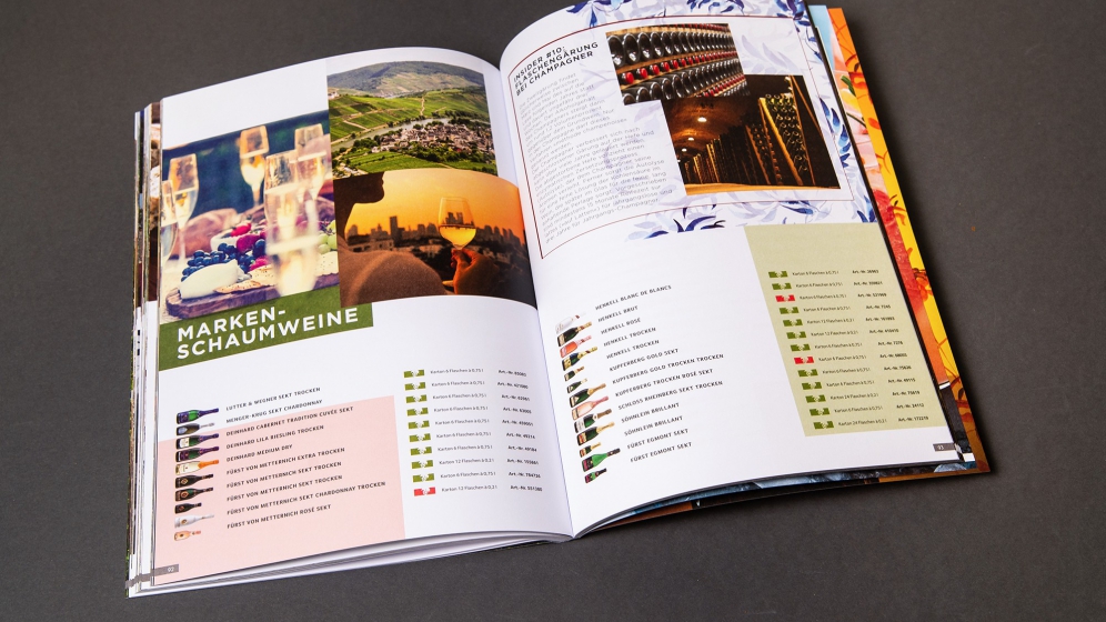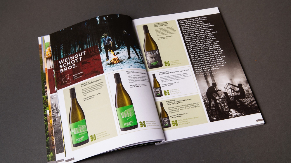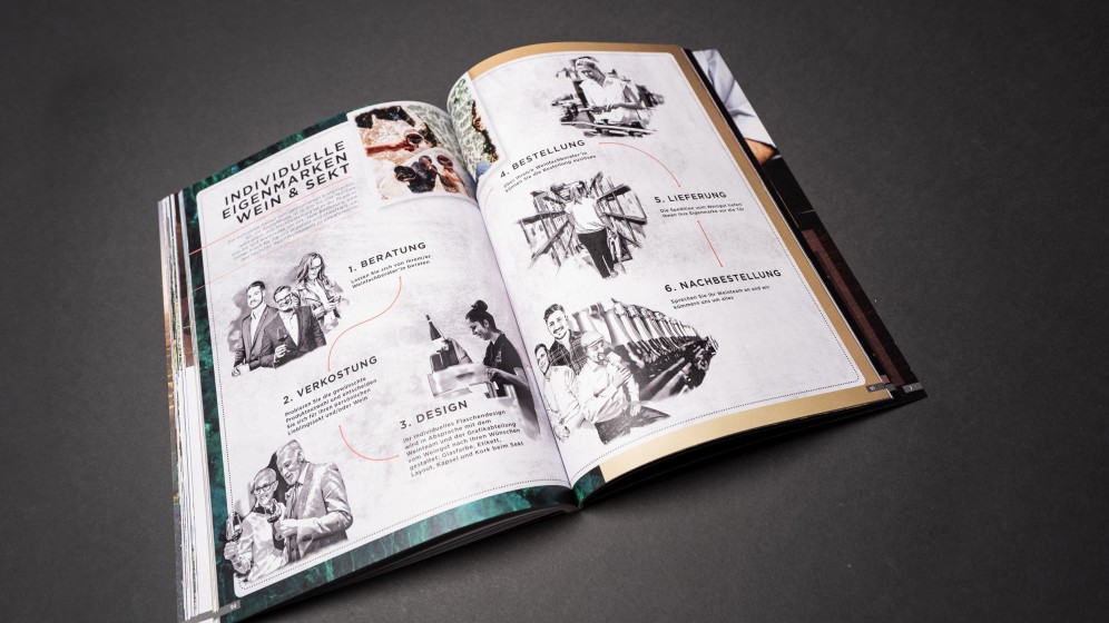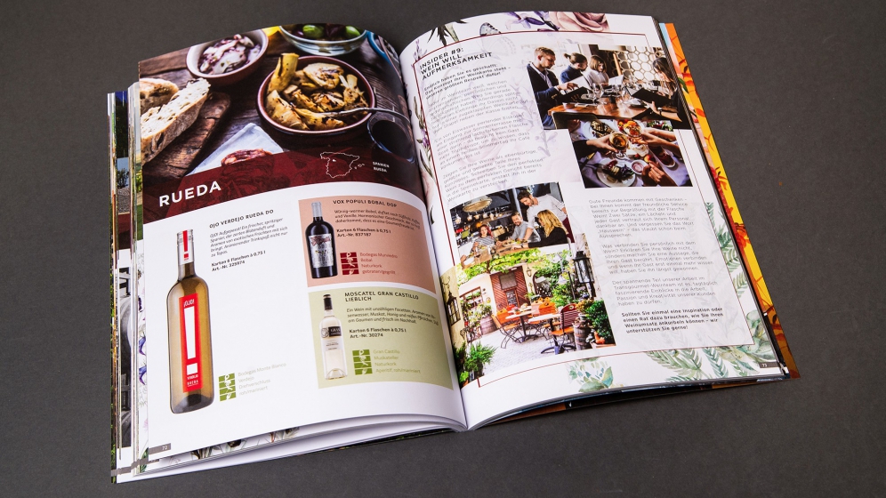 The first cooperation with me and Transgourmet was on the Non-Food 2016 catalog and quickly spread to the wine catalog in the following year. Since then I have produced two Non-Food and three wine catalogs. Every new version was a big step up the ladder in the design. Every catalog has 96–136 pages. Wine is printed on a lovely offset paper with a solid paper weight while Non-Food is printed on coated paper.