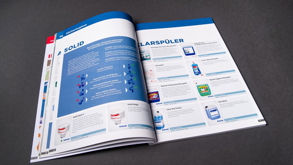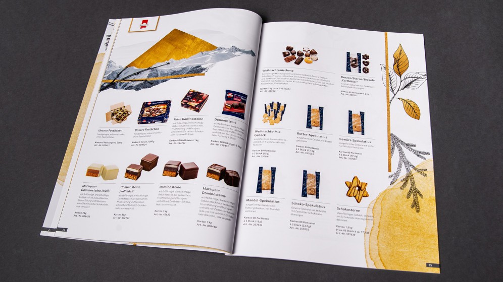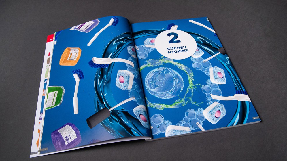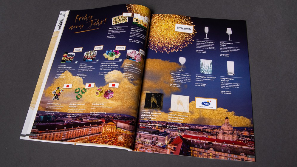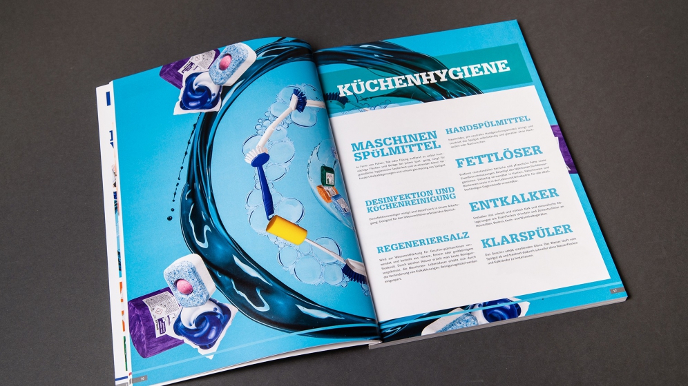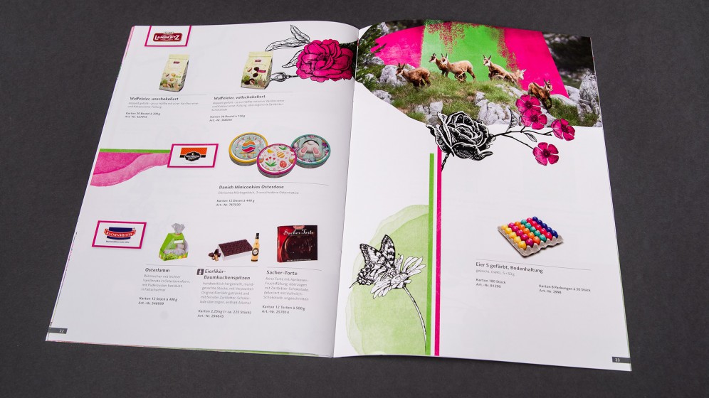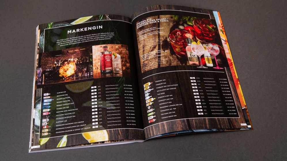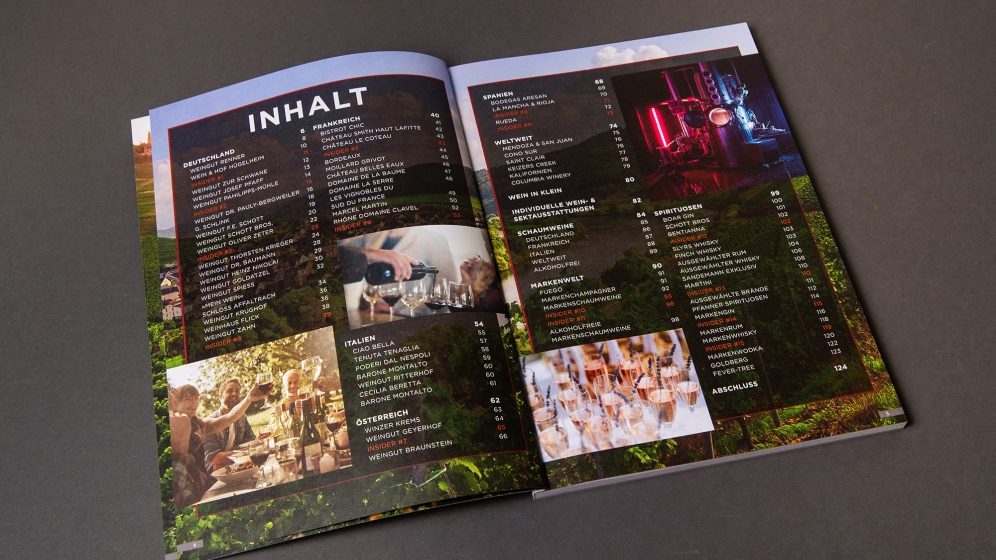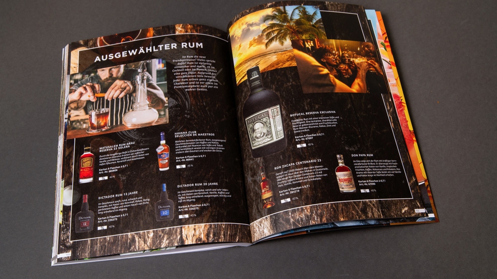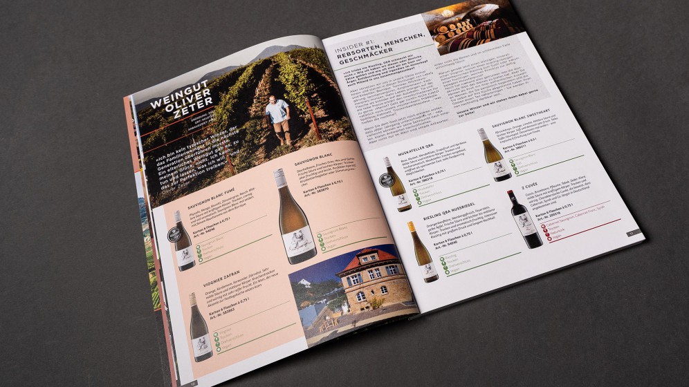 The first cooperation with me and Transgourmet was on the Non-Food 2016 catalog and quickly spread to the wine catalog in the following year. Since then I have produced two Non-Food and three wine catalogs. Every new version was a big step up the ladder in the design. Every catalog has 96–136 pages. Wine is printed on a lovely offset paper with a solid paper weight while Non-Food is printed on coated paper.