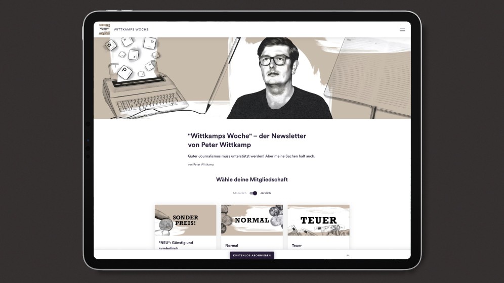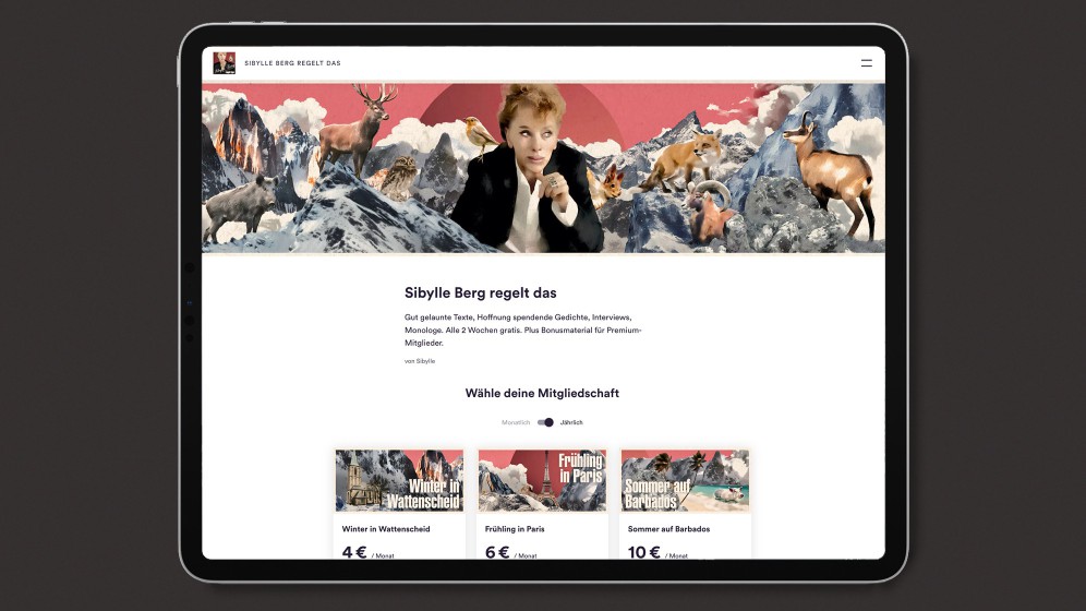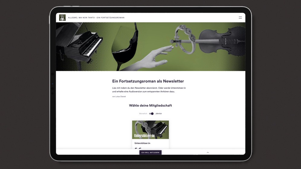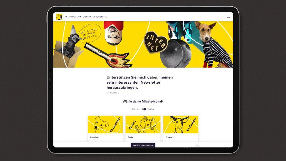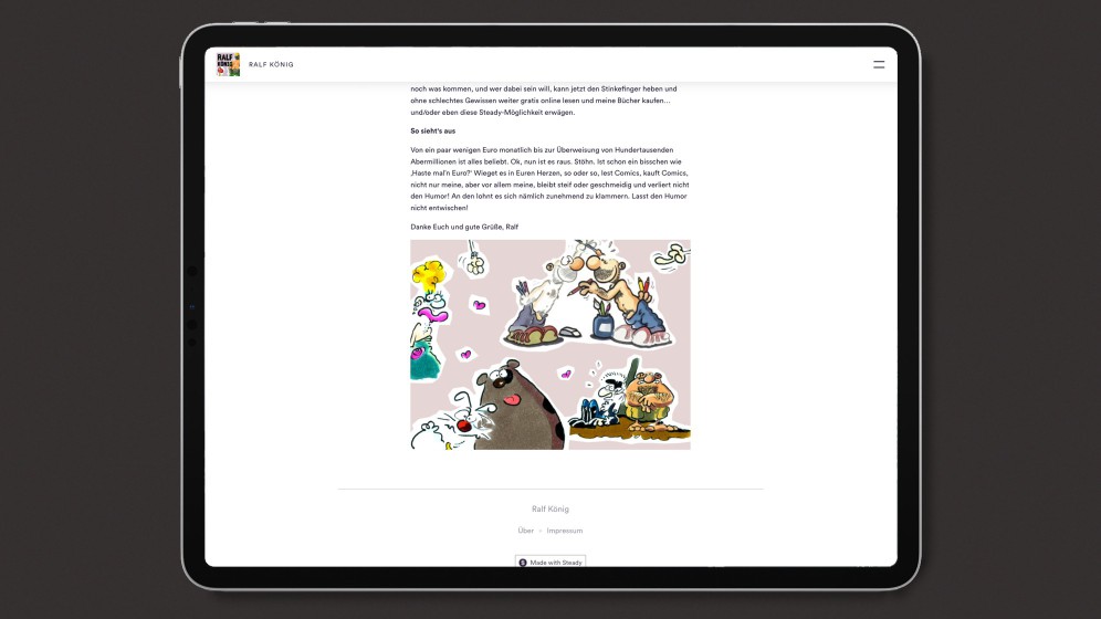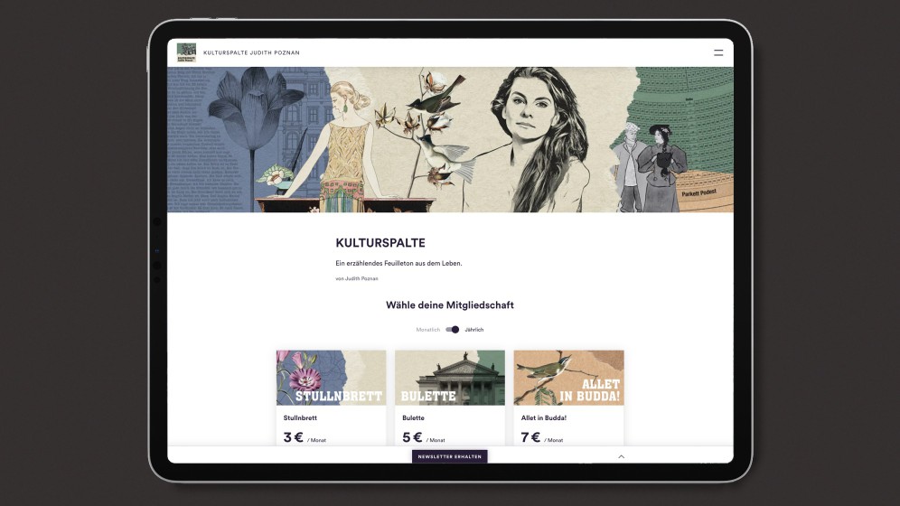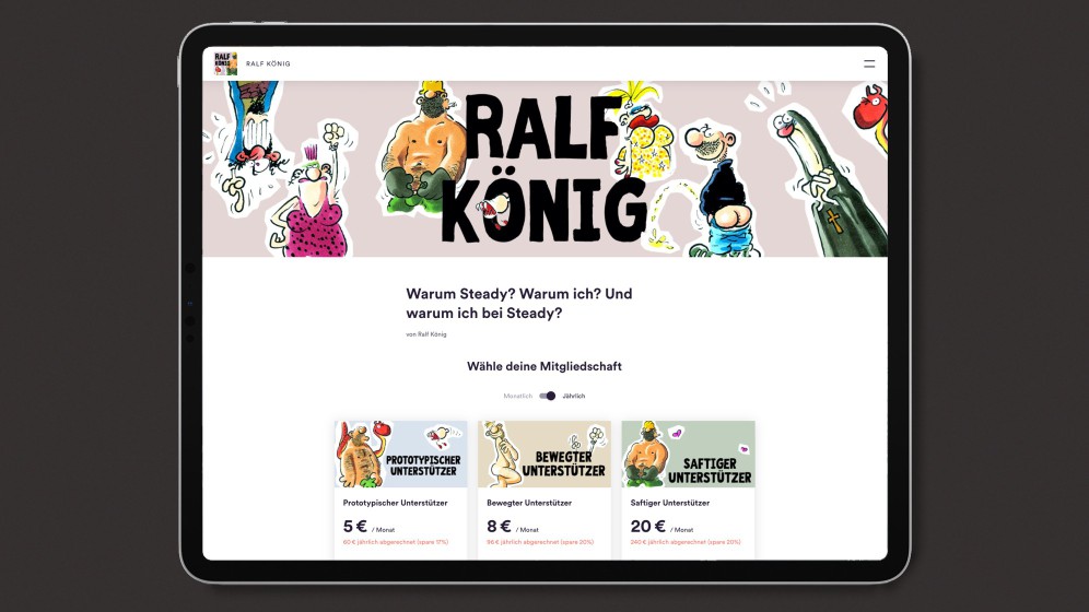 Since 2022 I started creating designs for Steady landing pages. Steady is a publishing platform that allows you to sponsor your favorite creators. You’ll find authors, cartoon artists, video creators, fitness trainers, spiritual guides, photographers, and many many more on Steady. For a selected few of them I got to create the graphic elements of their individual landing pages which is truly great fun!