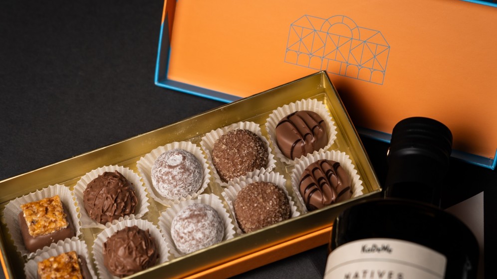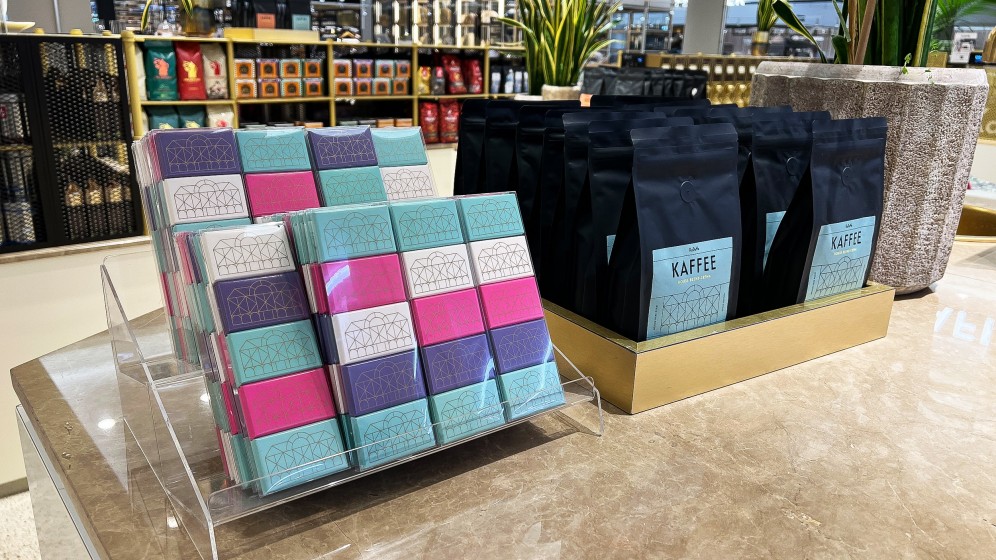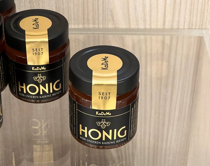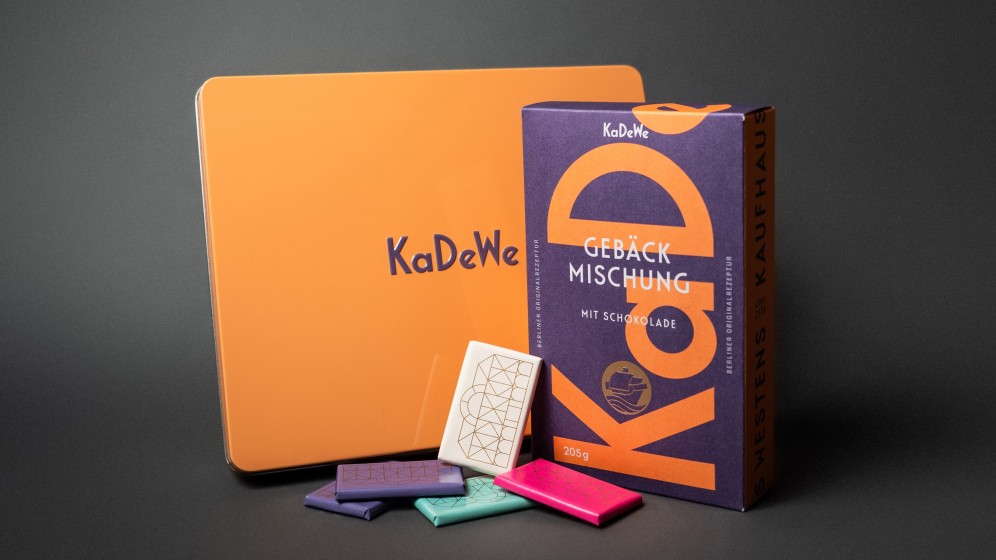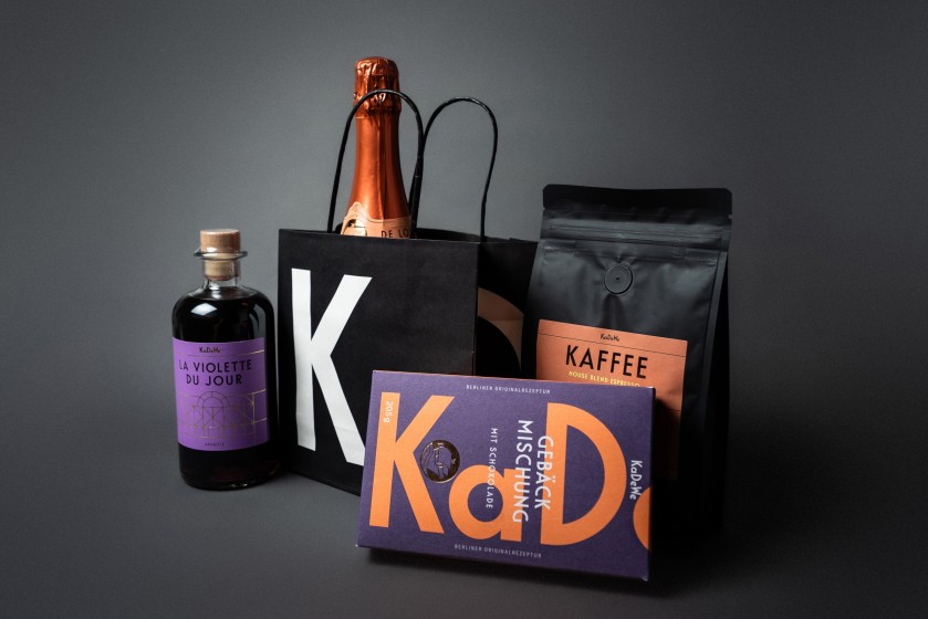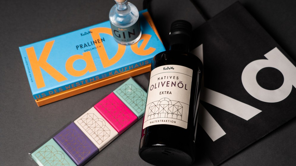 In 2023, KaDeWe asked me to pick up the thread from Studio Chapeaux’ design works for their own line of food products. I am pleased to report that I have successfully introduced a diverse range of products to the store. This includes elegantly packaged bonbons, truffles, crémant, rosé wine, prosecco, gummy bears, honey, olive oil, coffee, gin – with many more exciting additions on the horizon! You can discover these offerings throughout KaDeWe's cherished 6th floor.
